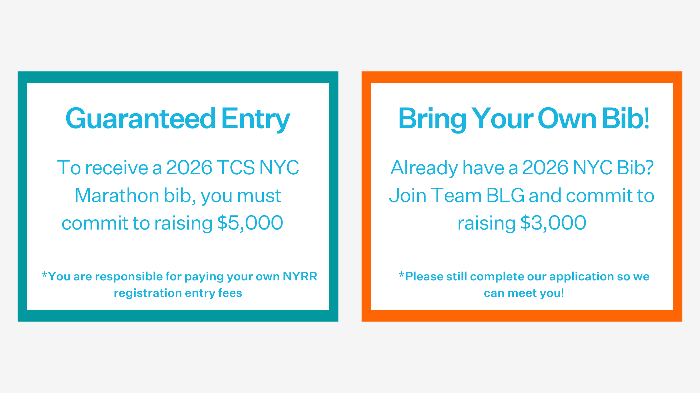 If you have secured a 2026 TCS NYC Marathon entry through the lottery or a qualifying time, you can still join and fundraise for Team BLG! Please still complete an application so we can meet you! “Bring Your Own Bib” participants will have access to all Team BLG perks.